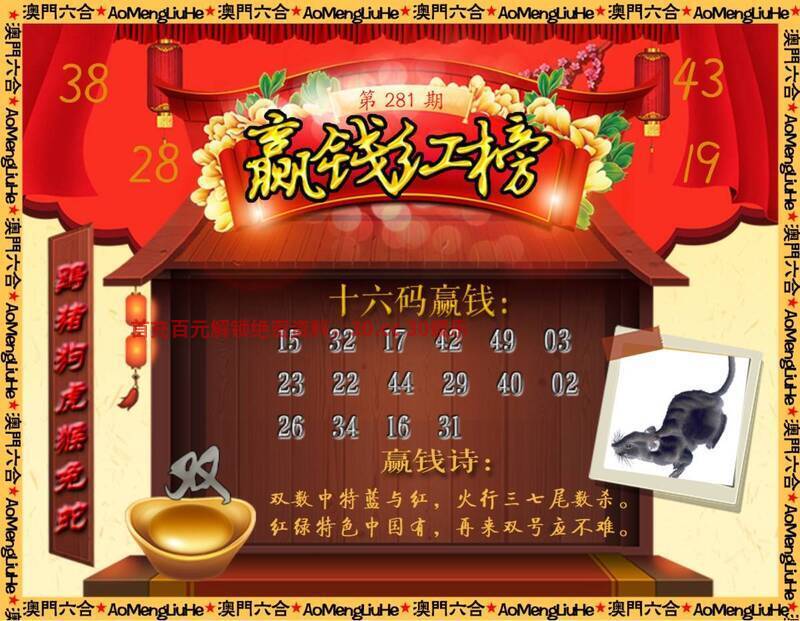 282期红字暗码【隔岸观火08 19 34 37】 |
